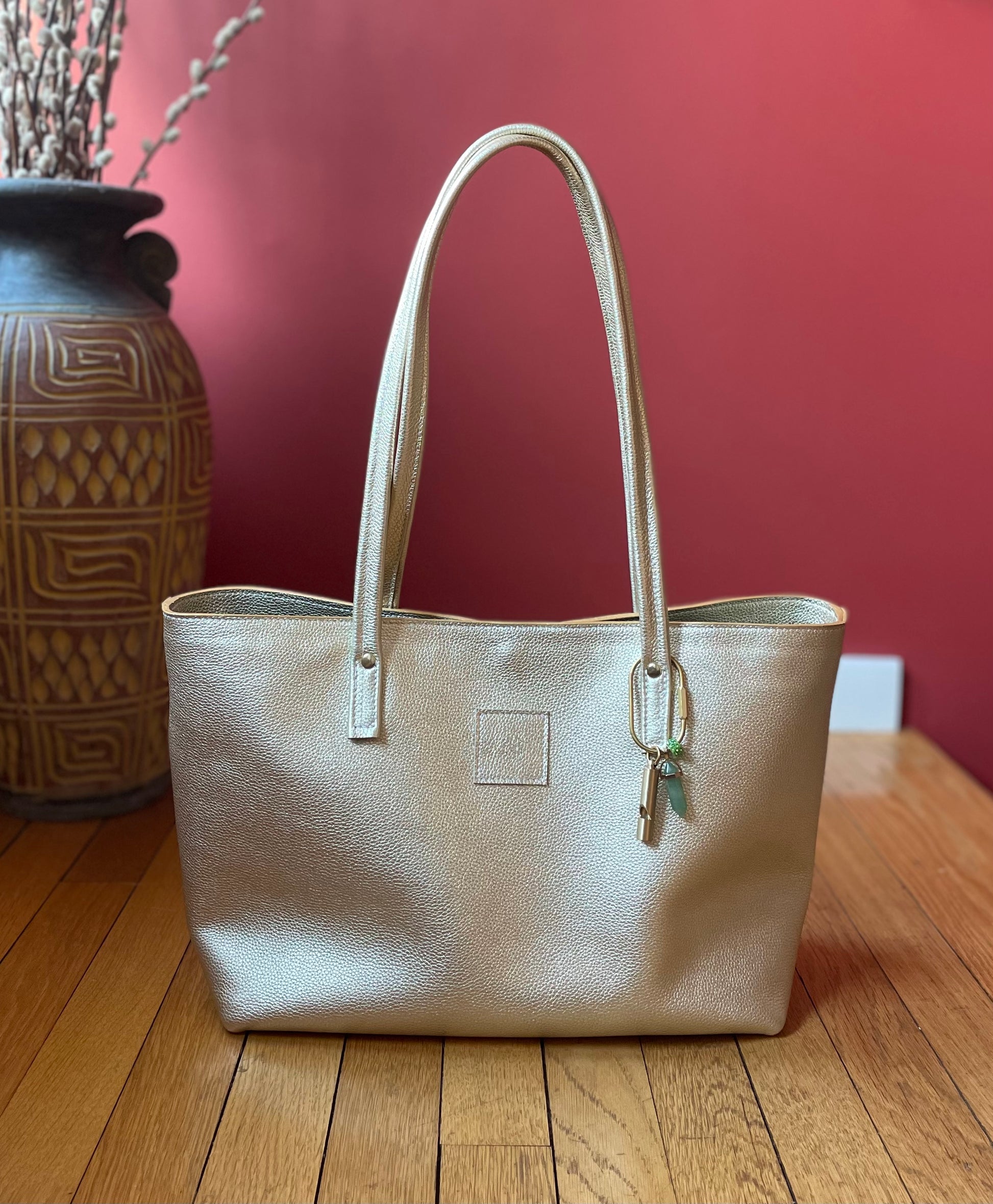 PARIS is fashioned after a famous designer tote and will carry not only your water, but your laptop, and everything else. French fig upholstery lining with pockets, italian edge painted edges and elegant Brass Feet to protect the already robust leather.